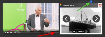 - Video si můžete přepnout do režimu celé obrazovky - tlačítko označeno červenou šipkou v obrázku níže
